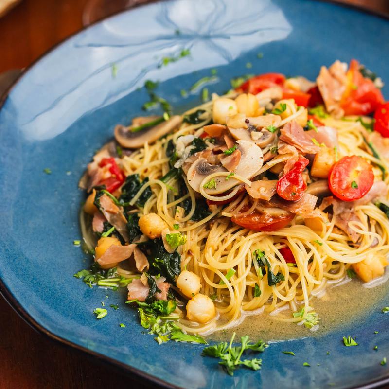 Angel Hair Bay Scallops and Prosciutto